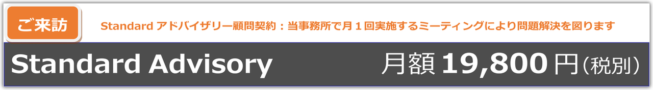 たとえば、ある月は「Onlineアドバイザリー(Zoomによるコンサルティング)」を、別の月は「メールアドバイザリー(メールによるコンサルティング)」を、またある月から別の月までは「スタンダードアドバイザリー(ご来訪によるコンサルティング)」をという具合に、事業主様のご都合・ご事情、案件の立て込み状況等に合わせ、コンサルティングの方法を調整することが可能です。